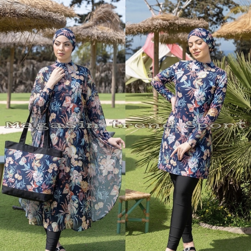 بدلة سباحة رائعة على طراز البوركيني مكونة من:
