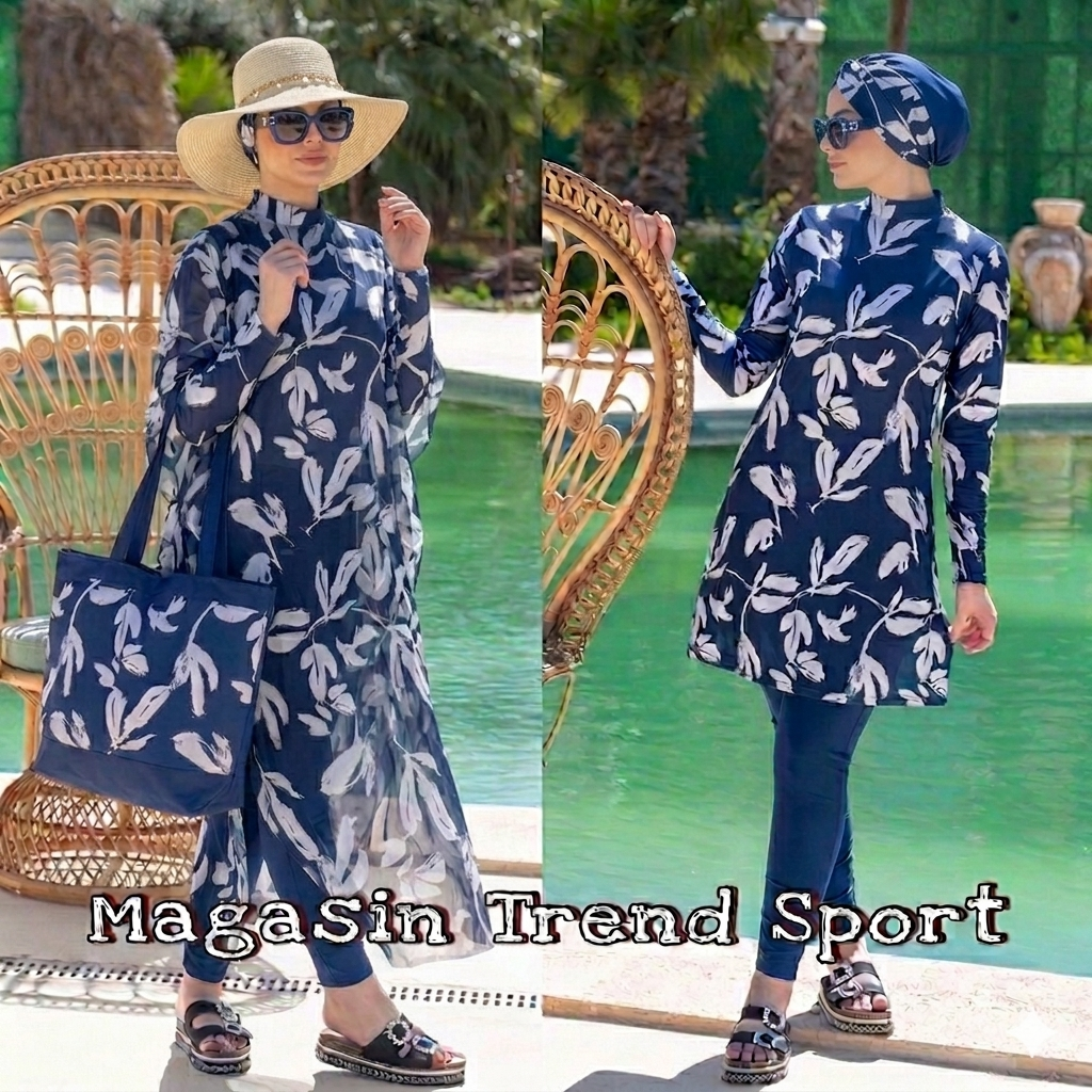 بدلة سباحة رائعة على طراز البوركيني مكونة من: